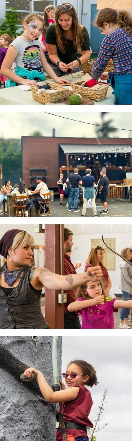 Converting Trackers SE into a Family Lodge: A gathering place for families to connect with food carts, archery, bouldering, axe throwing, fire pits, and play spaces.